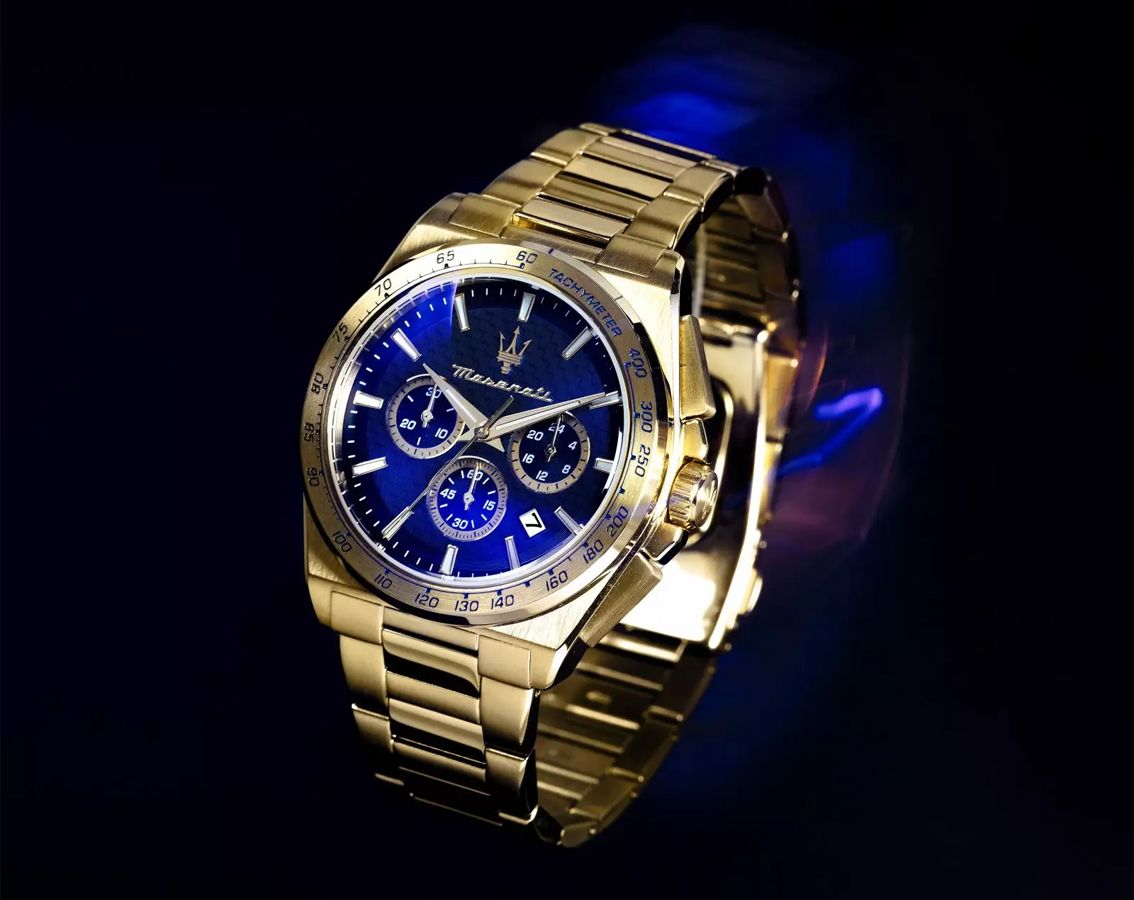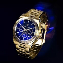 The Maserati Velocitá R8873652002 men’s watch is a unique model that combines a sporty character with an elegant finish. It has a gold-colored envelope made of stainless steel with a width of 43 mm, which gives it a solid look. The dial in an intense blue color is eye-catching, and its surface is covered by mineral glass. The watch is waterproof to 100 meters, making it suitable for swimming. The gold bracelet, also made of stainless steel, blends perfectly with the whole, creating a harmonious whole. The quartz mechanism offers convenience of use, and the watch comes with a two-year warranty. This is an ideal choice for men who appreciate style as well as functionality.