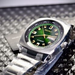 Seiko Recraft SNKM97 Automatic Green Dial Gold Tone Men’s Watch Day-Date 43mm